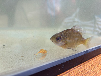 見つかったのはアメリカザリガニやブルーギルなどの外来種がほとんどでしたが、在来種であるクロダハゼも発見できました。