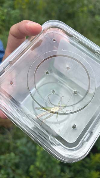 草原での生きもの探しでは、一見すると姿が見えないのですが、目をこらすとヤマトシジミやキタキチョウ、カマキリの卵などをあちこちで見つけることができました。
